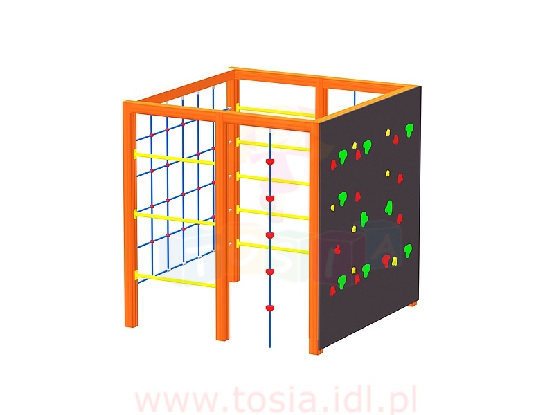 Wszystkie urządzenia wykonane są z drewna klejonego ; kantówki sosnowej, zabezpieczonej przed wpływem czynników atmosferycznych przez malowanie preparatem naturalnym. Elementy konstrukcyjne utwierdzone w gruncie za pomocą kotew stalowych przytwierdzonych do fundamentów punktowych. Zjeżdżalnie ze stali kwasoodpornej. Elementy meta-lowe ocynkowane. Liny atestowane o podwyższonej trwałości. Elementy pełne ; w tym daszki, bariery, osłony, zabezpieczenia zjeżdżalni i inne wykonane z płyty HDPE. Polietylen (HDPE) nie nasiąka wodą, nie pęcznieje, nie rozwarstwia się ani nie łamie. Jest to materiał odporny na trwałe zabrudzenia oraz graffiti. Posiada Atest PZH.
